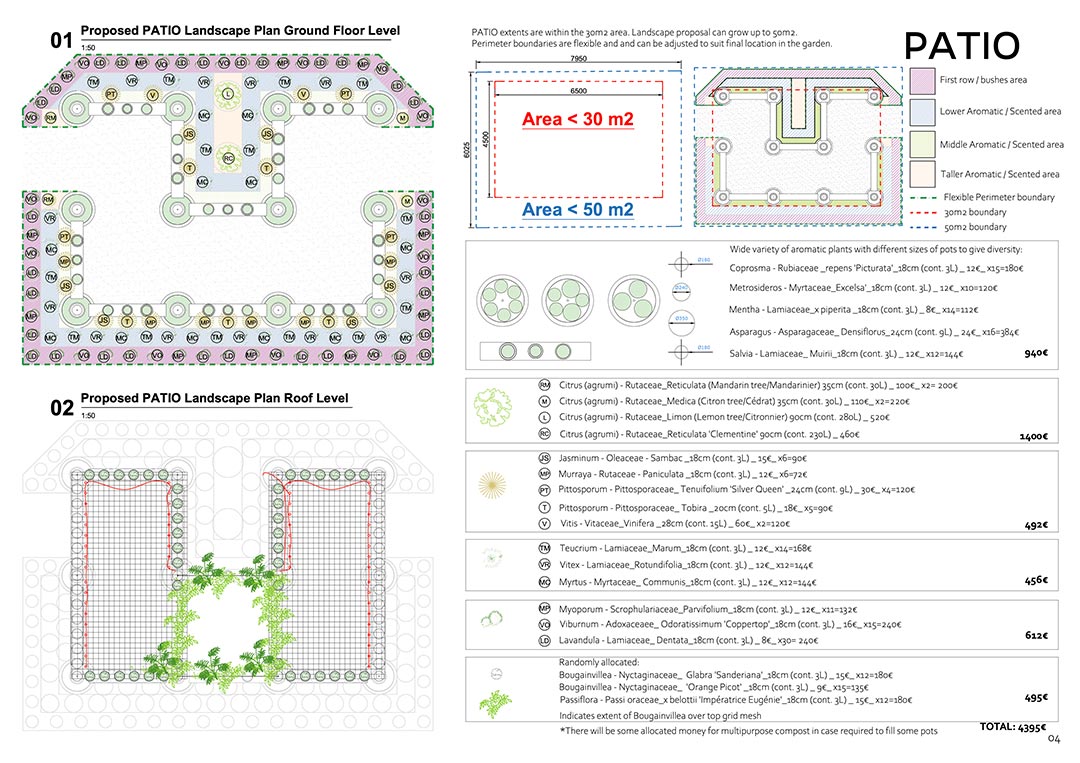 PATIO reimagines the traditional Mediterranean garden through a contemporary and sustainable lens. Inspired by Andalusian patios (spaces with Roman roots traditionally used for social gathering and respite from the heat) the project offers a place of calm, freshness and connection.