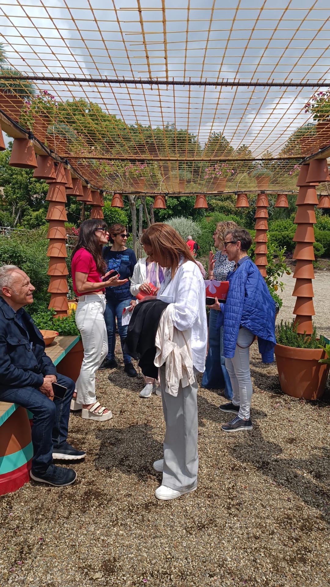 Terracotta pots, grid meshes, soil and vegetation are used as modular elements that can be repurposed or recycled, leaving no trace beyond memory. While the exterior appears deliberately chaotic and layered, the interior reveals a sense of order, calm and enclosure.